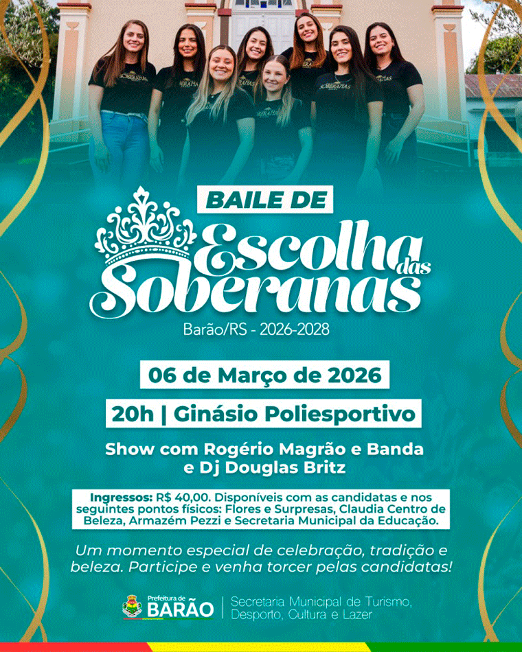 No dia 06 de março de 2026, Barão vive uma noite especial de celebração, tradição e beleza com o Baile de Escolha das Soberanas!